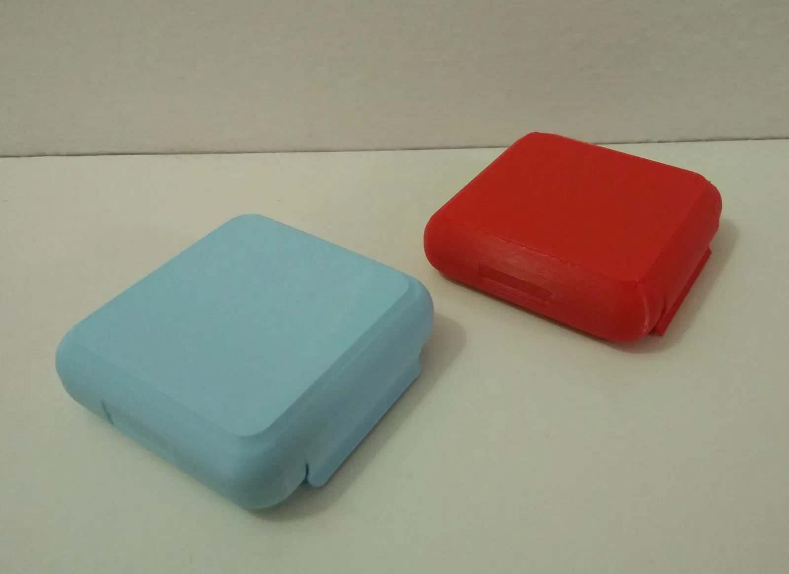Hộp đựng nhỏ gọn cho bao cao su, tampon và các vật dụng nhỏ khác, thiết kế để bỏ túi thật êm ái. Phiên bản 16mm và 18mm, sử dụng dây filament làm bản lề. Hướng dẫn in chi tiết.