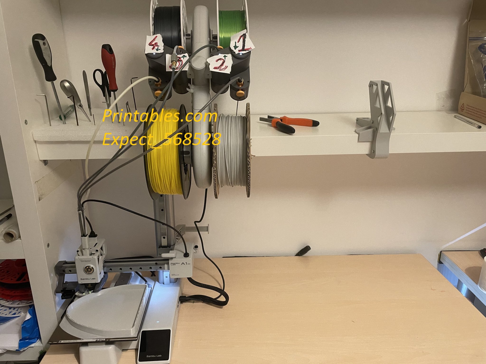 Không cần phải cân bằng cuộn filament vì cái đế này được bắt vít vào kệ rồi.