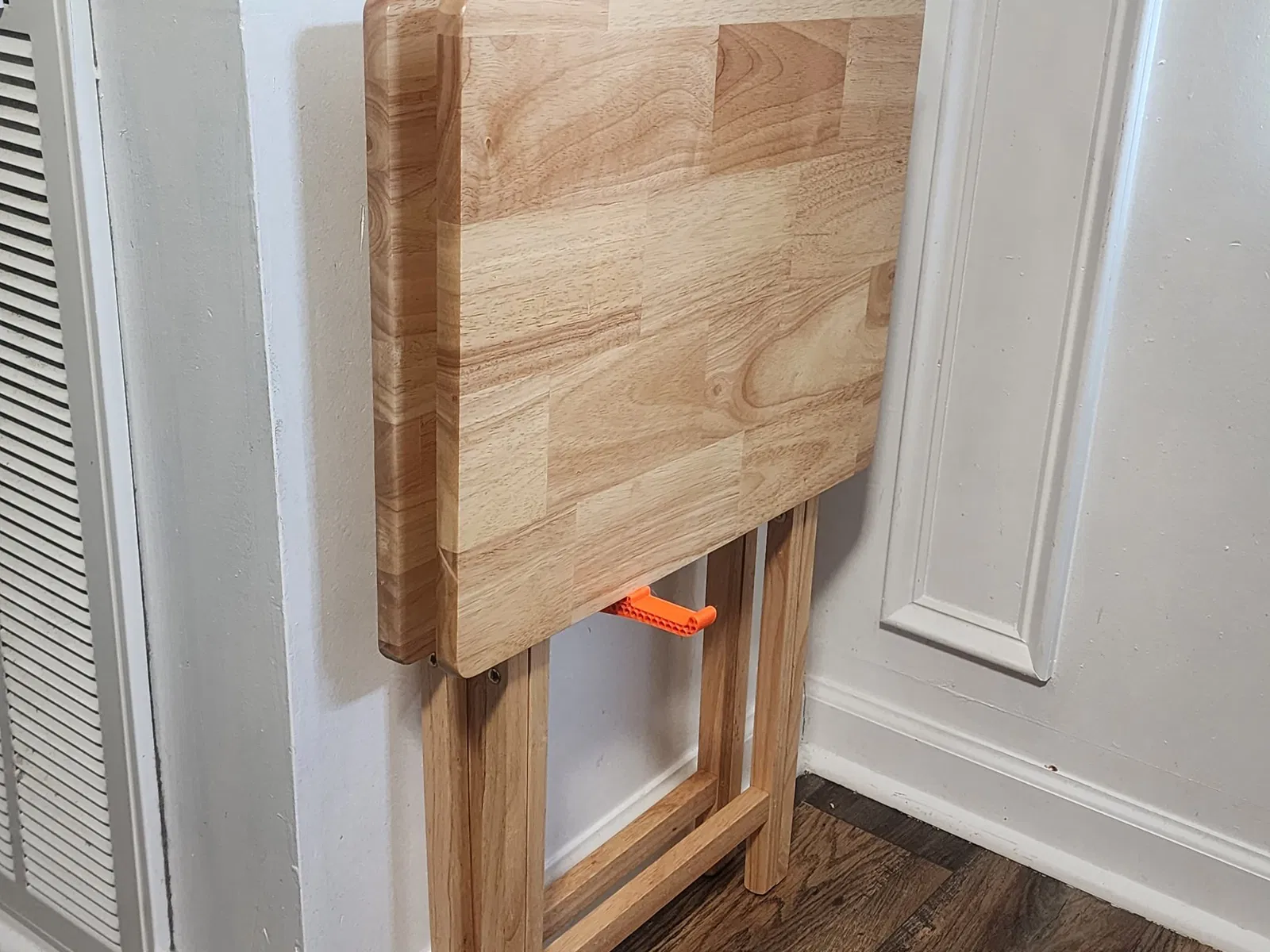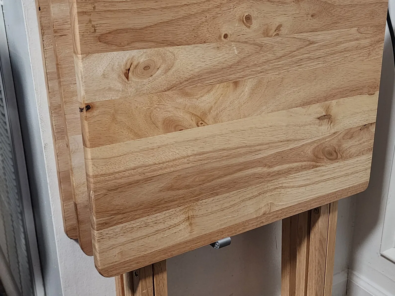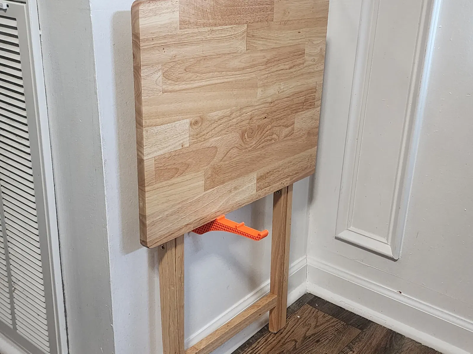 Tụi mình hay xài mấy cái bàn TV gấp này lắm, mà cất giữ nhiều cái thì lại là vấn đề. Cái giá đỡ này có thể in ra để cất mấy cái bàn đó áp sát vô tường.