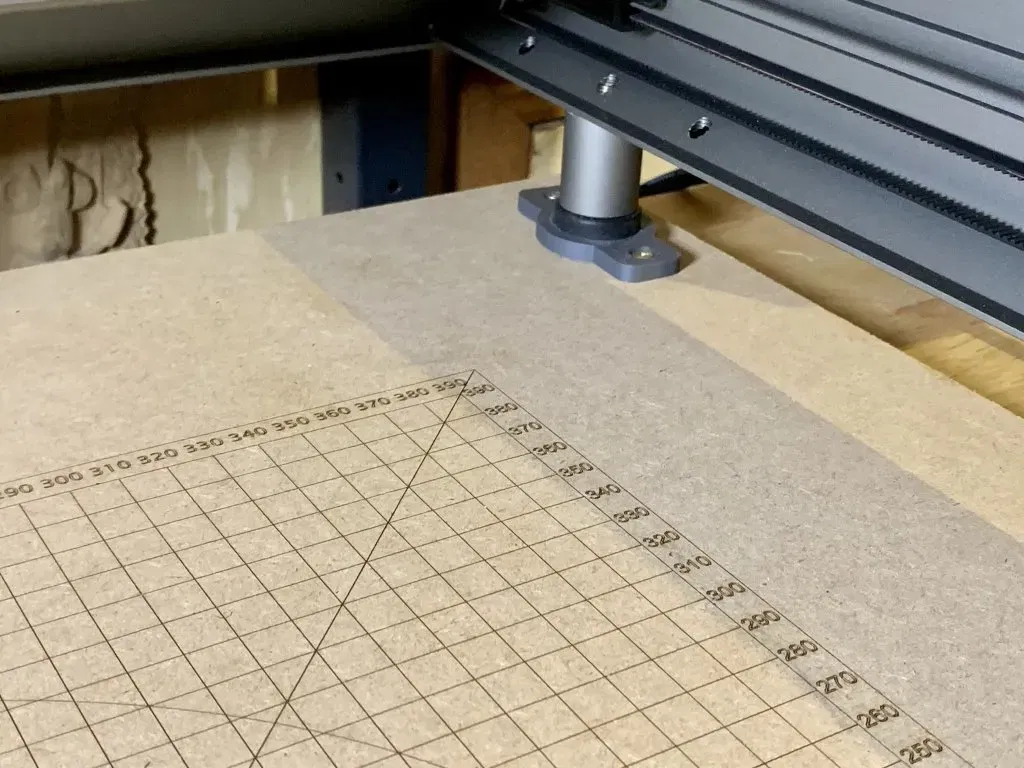 Chia sẻ mẫu lưới định vị và bộ chặn cho máy laser Creality Falcon 2, giúp cố định máy chính xác trên tấm MDF. Rất hữu ích cho các dự án cắt laser sáng tạo.