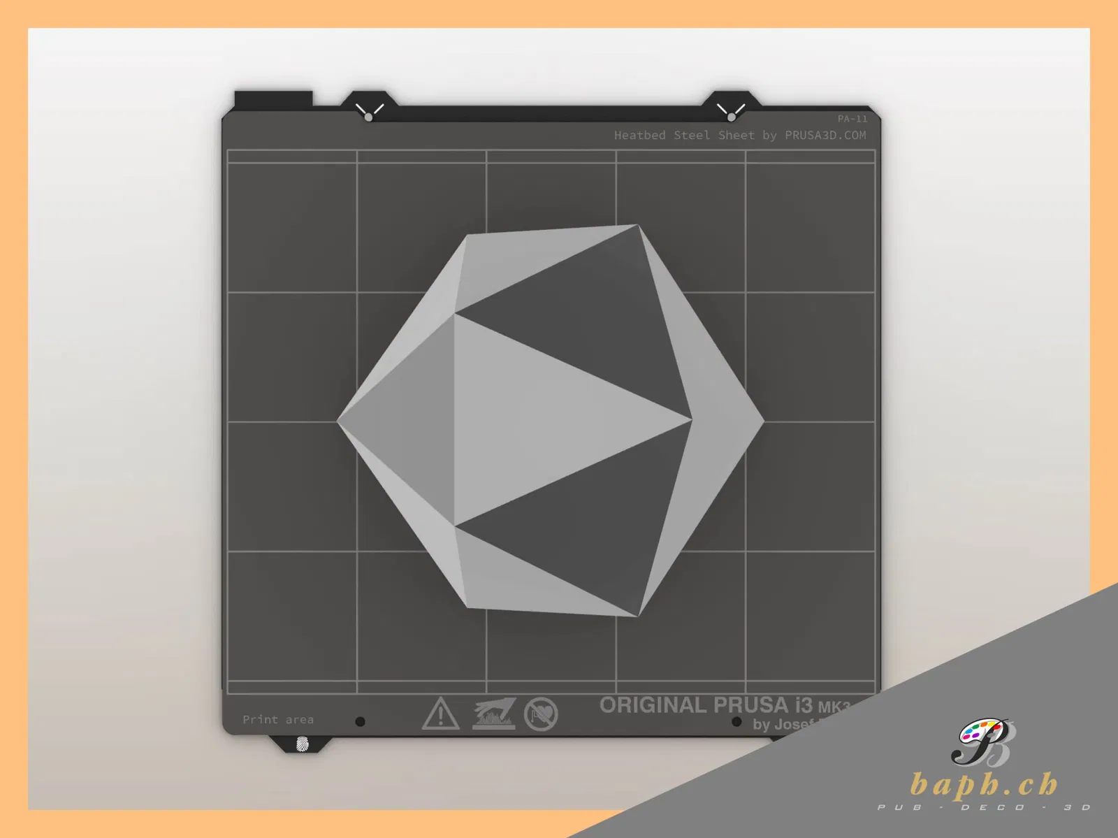 Mô hình 3D hình đa diện đều 20 mặt (icosahedron), với kích thước xấp xỉ 150 mm theo mỗi cạnh của khối lập phương. Lý tưởng cho các dự án hình học hoặc trang trí.