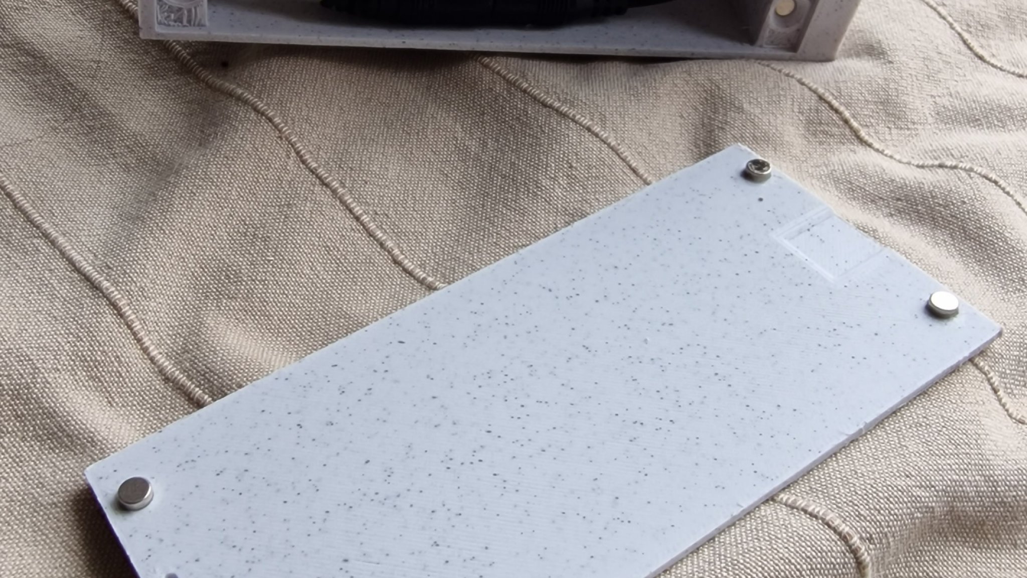 - Dán nam châm vào các lỗ dành cho nắp dưới - 4x trên đế + 4x trên chính nắp.