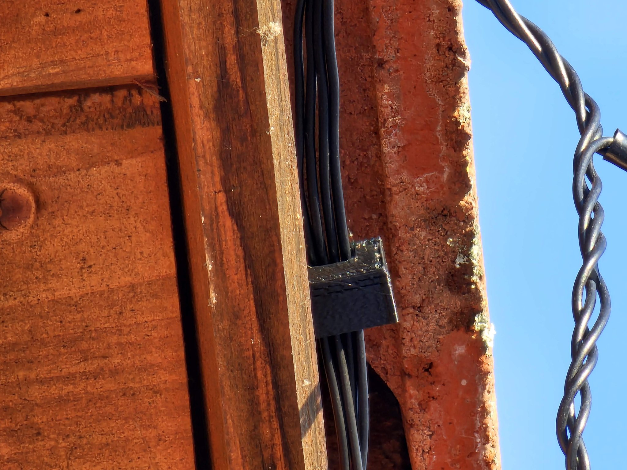 Tôi đã tạo ra một cái móc được thiết kế đặc biệt để treo đồ trang trí đèn Giáng sinh của tôi dọc theo mép mái nhà. Cái móc này được chế tạo để lắp vào khe hở giữa các viên ngói một cách dễ dàng và có thể được cố định chắc chắn giữa viên ngói và xà gồ bằng cách trượt nó sang một bên.