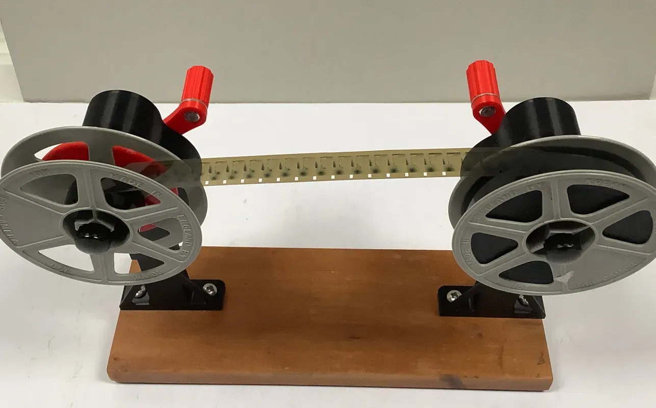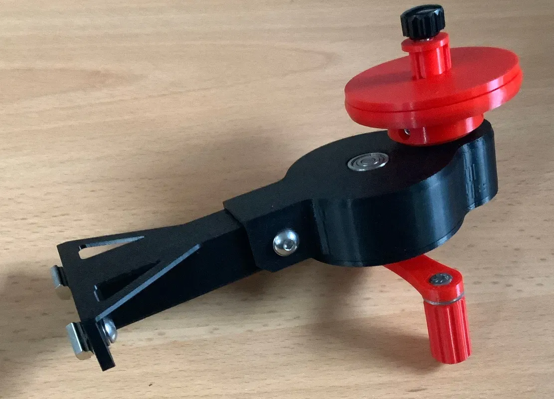Đây là bộ lên phim thủ công có bánh răng cho phim cine 8mm hoặc 16mm. Nó được thiết kế để gắn vào đầu thanh nhôm 2020, hoặc có thể được bắt vít vào một miếng gỗ bằng giá đỡ in 3D. Nó có thể được sử dụng để tua lại phim sau khi quét, cuộn phim đã phơi sáng vào các cuộn lớn hơn để lưu trữ, hoặc trong phòng tối để quấn một lượng nhỏ phim chưa phơi sáng từ các cuộn lớn.