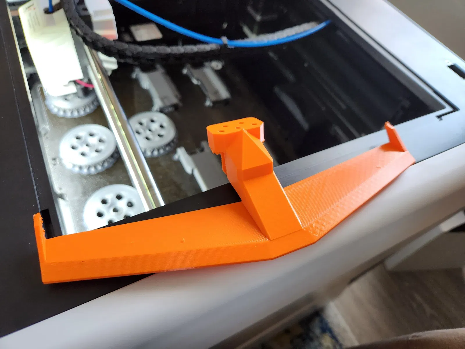 In úp xuống Chỉ dùng support dưới mặt phẳng in Tuân theo hướng dẫn nhiệt độ và tốc độ của hãng TPU bạn đang dùng. Có thể cần tăng khoảng cách và tốc độ retraction. Mình đề xuất mạnh là nên in thử vài lần trước để test TPU của bạn trước khi in cái này nha.