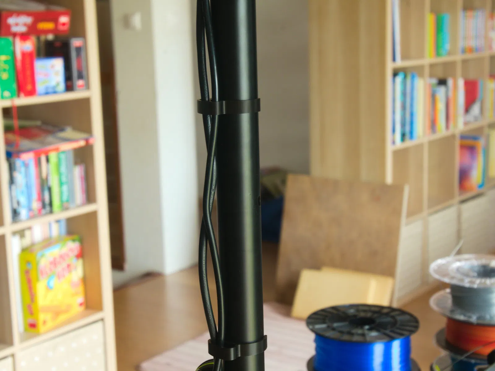 Mấy cái kẹp này được thiết kế để giữ dây cáp trên chân loa, nhưng mà bạn cũng có thể xài với bất kỳ ống tròn nào. File `.step` và `.stl` được tối ưu cho chân loa, cho 3 sợi cáp 8mm. Bạn có thể dùng Fusion360 với file `.f3d` để tùy chỉnh dễ dàng bằng cách chọn `Change Parameters`.
