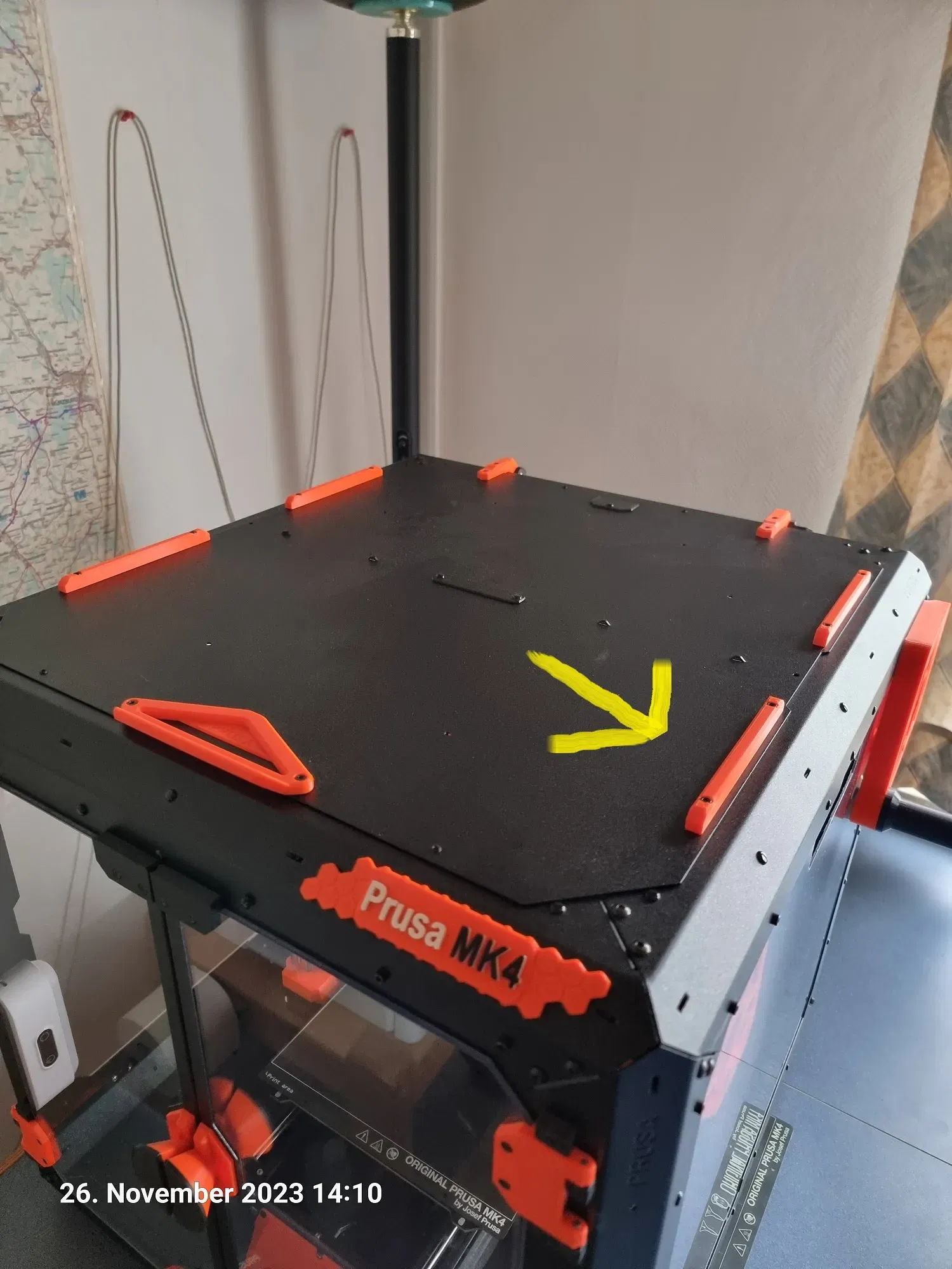 Để gắn, sử dụng ốc zin của Prusa (M3 x 8) nếu gắn vào nắp gập như hình.