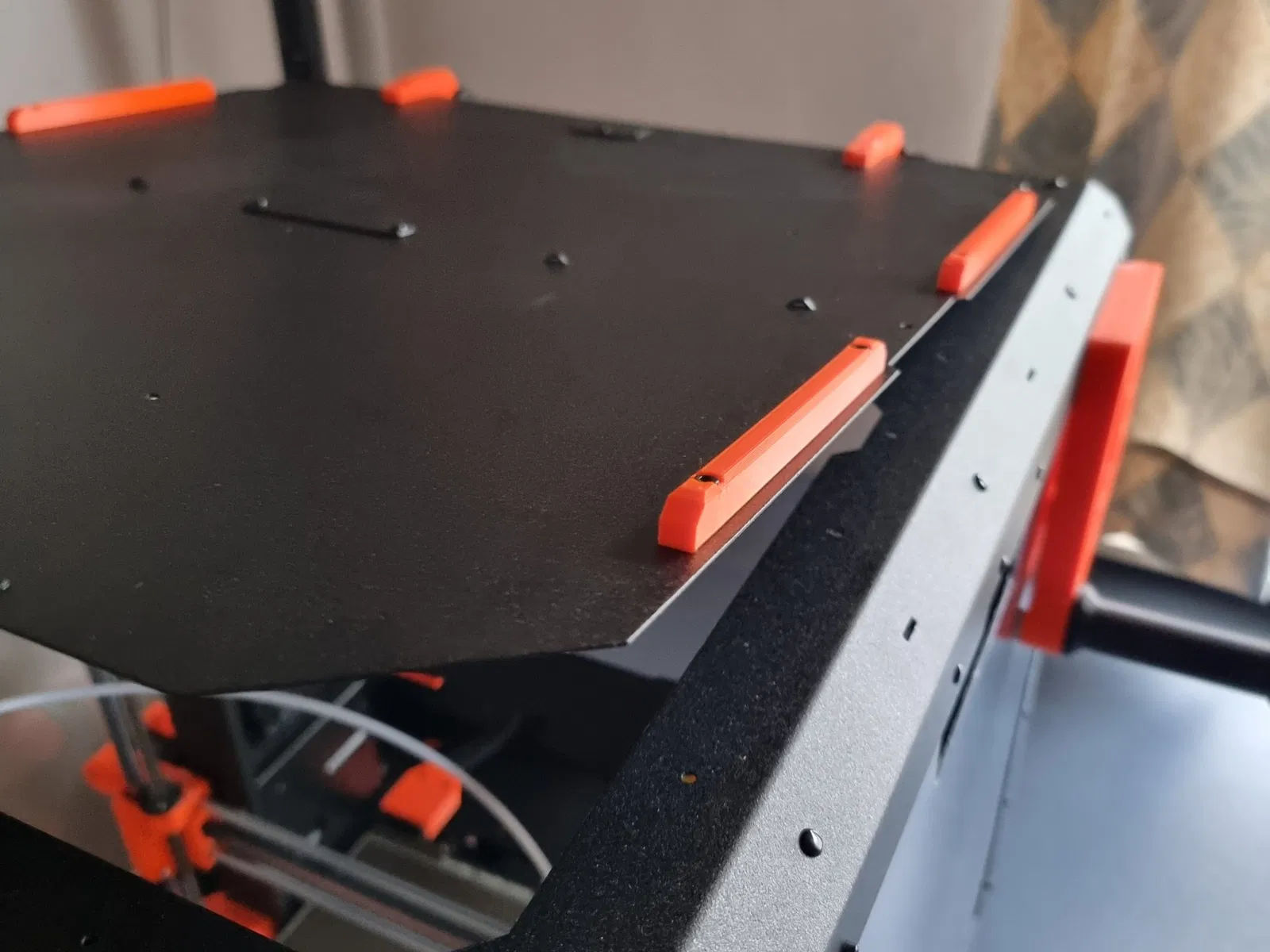 Thanh nẹp trang trí đơn giản cho hộp Prusa, có và không có nắp gập. Dùng ốc zin để lắp. Có hai loại ốc tương ứng với hai kiểu nắp khác nhau, tùy thuộc vào việc bạn có sử dụng nắp gập hay không.