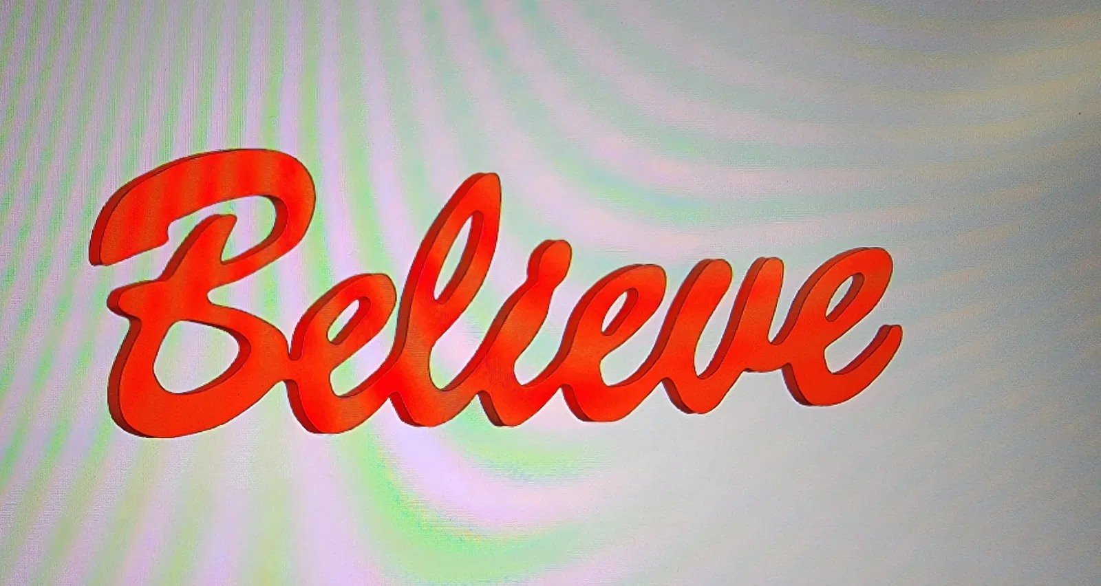 Bông tuyết có đường kính khoảng 10 inch và bảng hiệu Believe được cân chỉnh cho phù hợp.