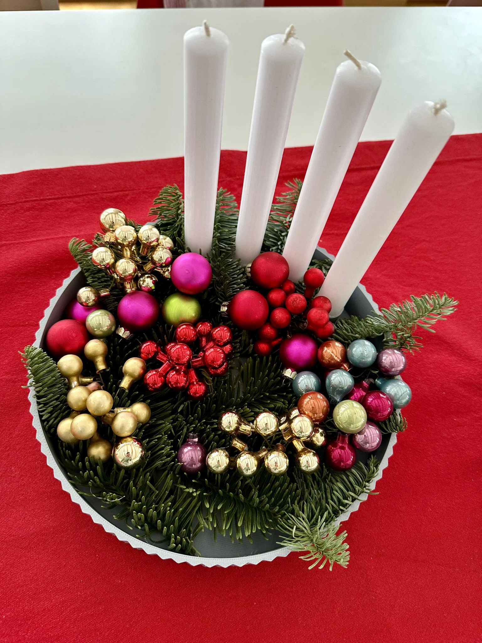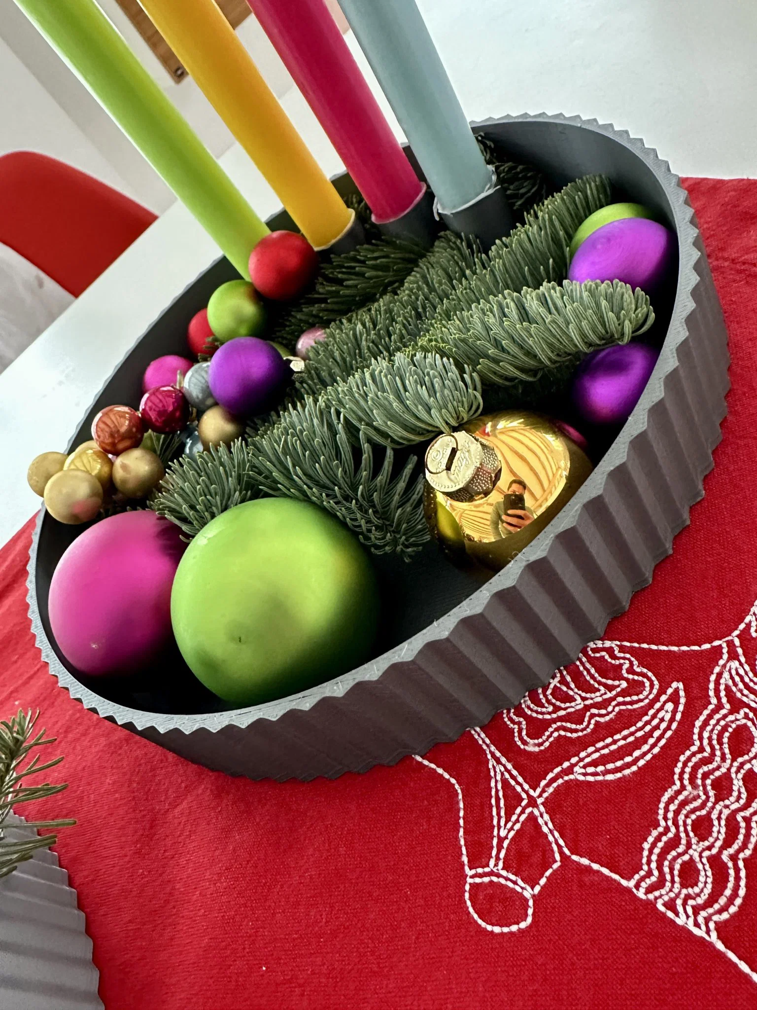 Vòng nguyệt quế Giáng sinh tối giản với đường kính 256mm, phù hợp cho 4 cây nến 21mm. Thiết kế tối giản, dễ in với bất kỳ vật liệu cứng nào, không cần đế đỡ. Hoàn hảo cho trang trí Giáng sinh.