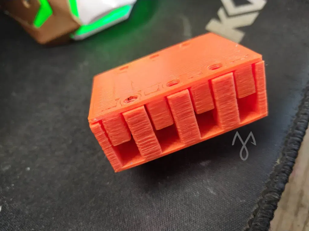 Bạn có thể sử dụng vít M3 hoặc M2.5 cho nhựa để giữ nắp lại. Đầu cuối vít (Domino) chỉ cần kẹp vào vị trí. Các vít lắp đặt được thiết kế để xuyên qua Domino và phía sau và cố định vỏ.