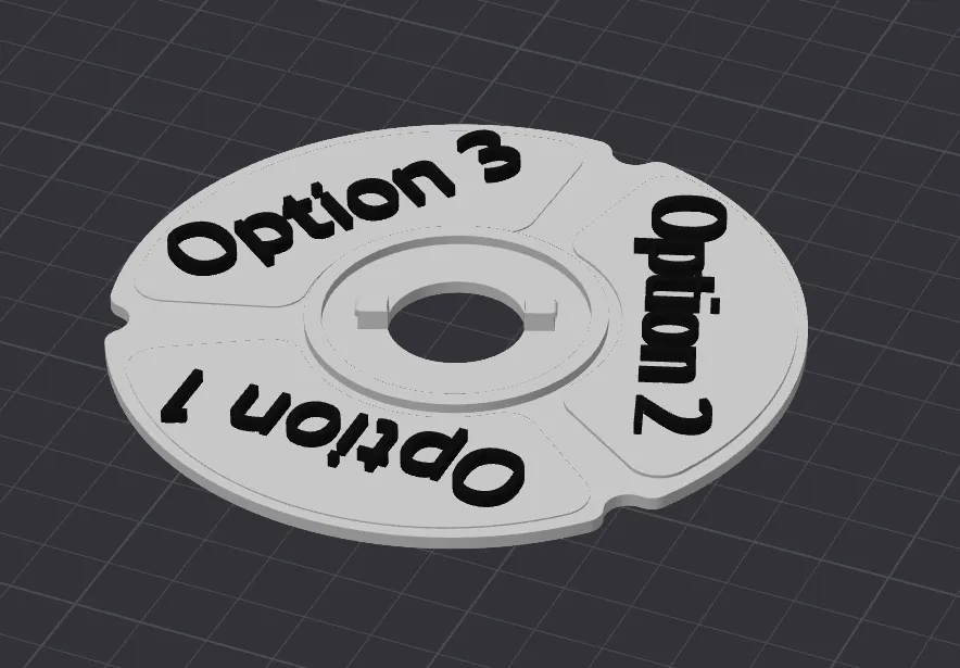 Một bánh xe chữ trống, dùng cho bộ chọn trạng thái máy rửa chén, có thể dùng cho các mục đích khác. Tui đã loại bỏ chữ gốc để bạn có thể tự in nội dung mình muốn lên đó, giống như thiết kế của anh Seth.
