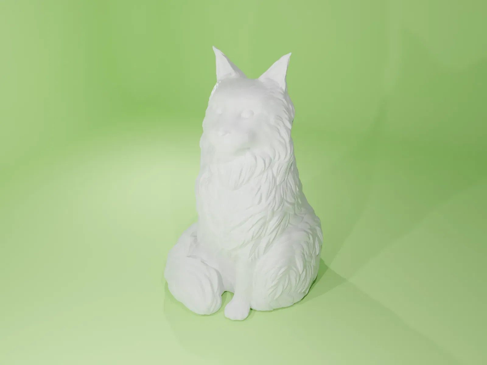 Mô hình mèo lông dài độ chi tiết cao, lấy cảm hứng từ mèo Maine Coon. Kích thước mặc định 88mm, phù hợp in FDM với đầu phun 0.4mm, độ cao lớp 0.15mm. Không cần support. Có thể in chi tiết hơn với máy in resin hoặc đầu phun nhỏ.