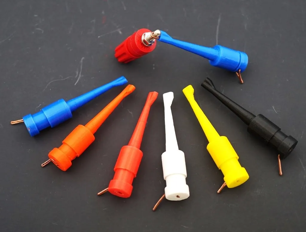 Đây là mô hình đầu dò dạng kẹp để đo điện, sử dụng dây đồng có đường kính 0.8 - 1.4mm và lò xo. Bạn có thể làm theo hướng dẫn để lắp ráp và hàn dây cáp vào sử dụng.