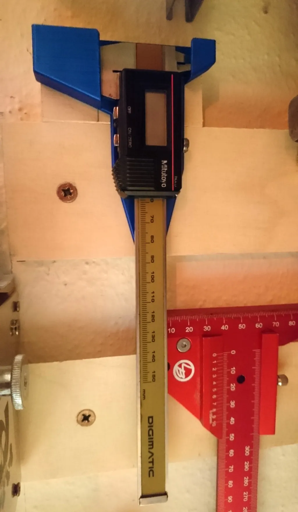 Giá đỡ cho thước cặp kỹ thuật số và thước cặp "thông thường". Có hai phiên bản lắp đặt: kiểu thanh treo tường pháp (french cleat) và loại bắt vít. In ở tư thế đứng và dùng brim cho phiên bản bắt vít.