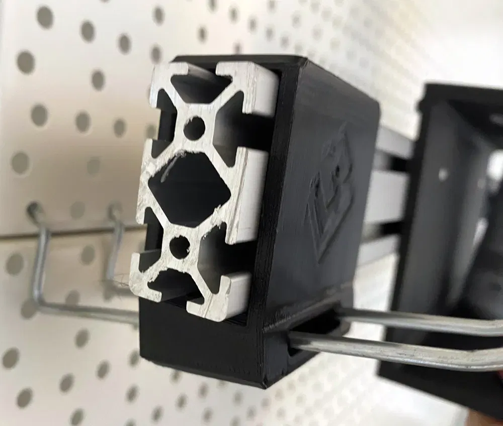 Nếu bạn có các kệ làm từ hệ thống TEGO, giờ đây bạn có thể kết hợp chúng với các thanh nhôm định hình tiêu chuẩn 20x40mm. Giá đỡ được nghiêng 10° về phía trước để cân bằng độ dốc của móc, giúp thanh nhôm đứng thẳng.