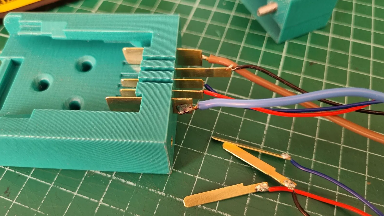 Tôi sẽ không đi sâu vào hệ thống dây điện ở đây - Google "dewalt battery pinout" để biết thêm thông tin; nó khá đơn giản.