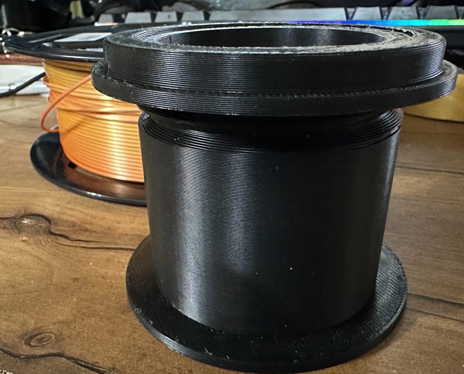 Rulo sợi Zyltech bị bự quá, không gắn vừa vô cái AMS Lite. Tui làm cái adapter đơn giản để chuyển từ 73mm xuống 57.5mm, đảm bảo rulo sợi luôn nằm yên trên cái AMS Lite, không có vấn đề gì hết trơn. Nếu cái nắp hơi chật, bạn cứ scale nó lên 102% ở trục X và Y nha.