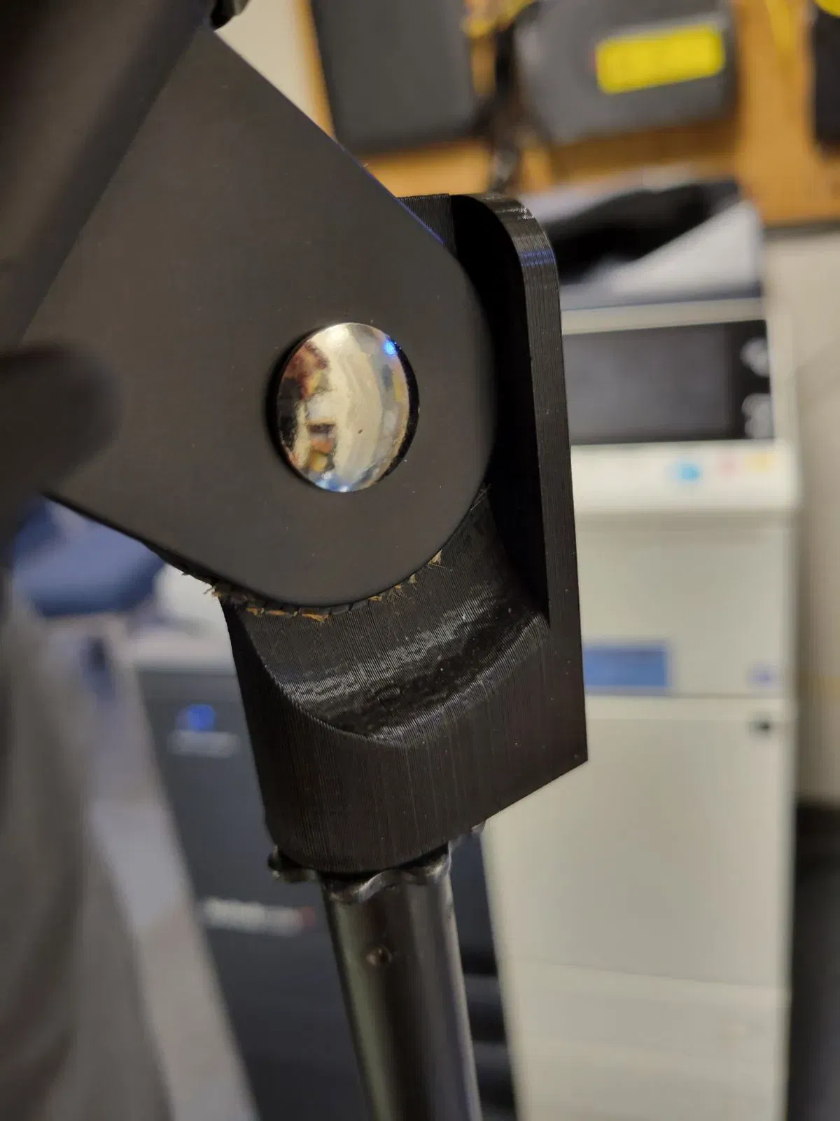 The design calls for extra perimeters to try and get as much strength as possible, and the plastic bites directly into the threads of the base. Installation can be difficult, so I found it was helpful to attach the mic holder clamp/hinge first and use it as a lever arm to torque the plastic part onto the threads. I also had a second person grip the base shaft to prevent it from rotating during installation.