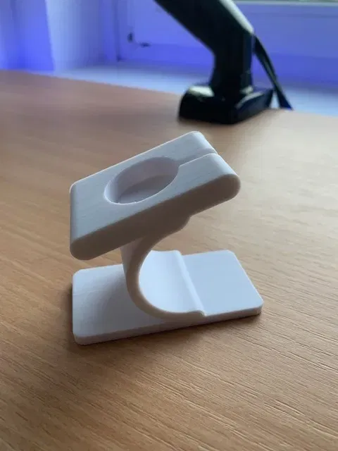 Cái đế sạc Apple Watch này, in bằng máy Anycubic I3 Mega S, được in nằm nghiêng và có sử dụng cấu trúc hỗ trợ. Để dễ dàng tháo bỏ, tôi đã đặt độ bám dính chỉ ở mức 2%.