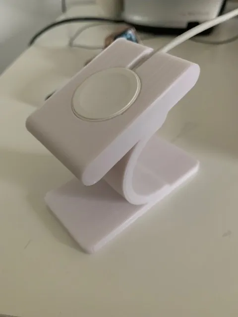Cái đế sạc Apple Watch này, in bằng máy Anycubic I3 Mega S, được in nằm nghiêng và có sử dụng cấu trúc hỗ trợ. Để dễ dàng tháo bỏ, tôi đã đặt độ bám dính chỉ ở mức 2%.
