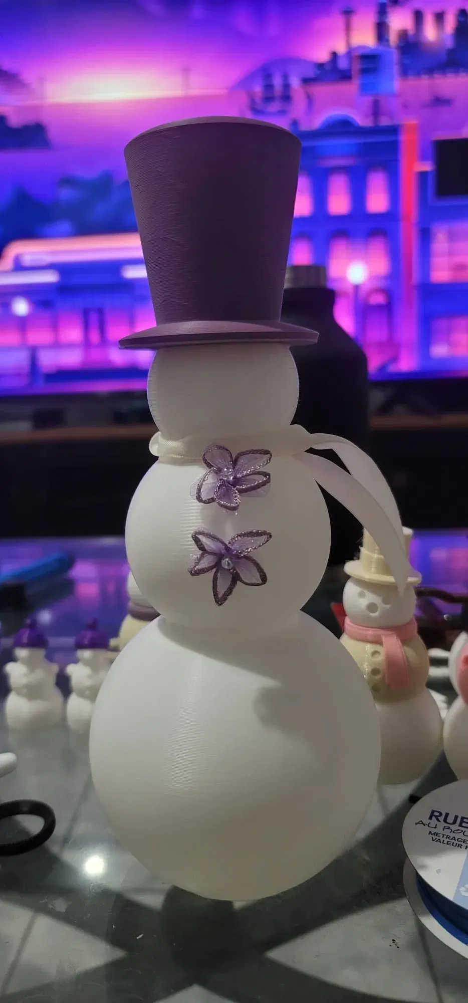 Vợ tui thích cái mẫu người tuyết trên Walmart nên tui làm liền. In cao gần 10 inch, chỉ cần dán cái nón là xong. Tui dùng 15% lightning infill cho thân và triangle infill cho nón. In hết khoảng 4 tiếng với CURA. Nhớ chụp hình lại khoe tui nha!