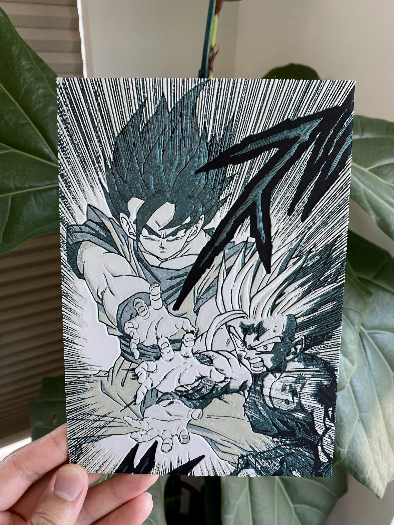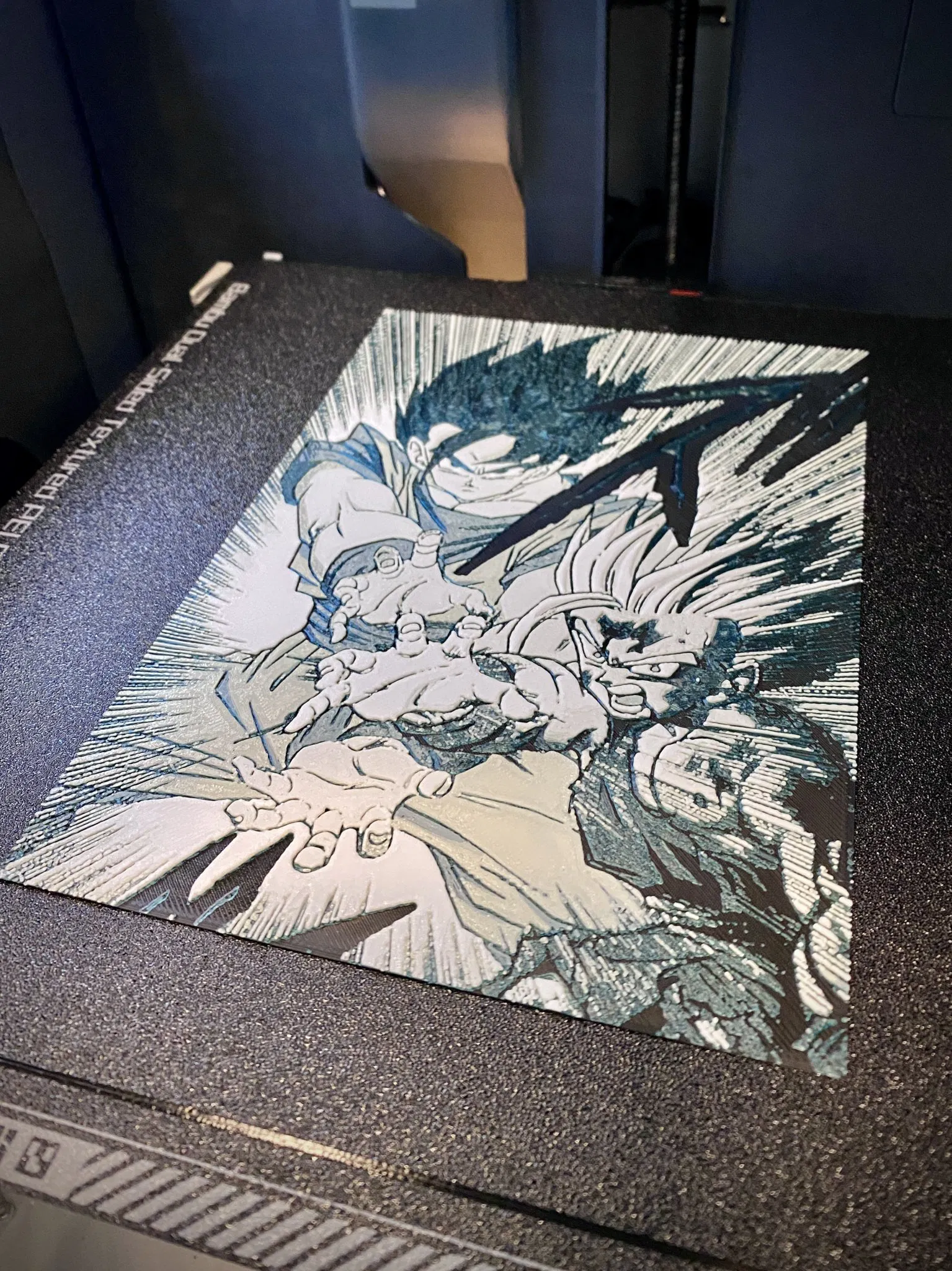Tái hiện khoảnh khắc Kamehameha kinh điển của Goku và Gohan dưới dạng tranh 3D Hueforge độc đáo. Mẫu này đã được thử nghiệm trên Bambu X1C với 4 màu AMS, mang đến trải nghiệm in ấn thú vị và thành phẩm ấn tượng. Lý tưởng cho người hâm mộ Dragon Ball Z.