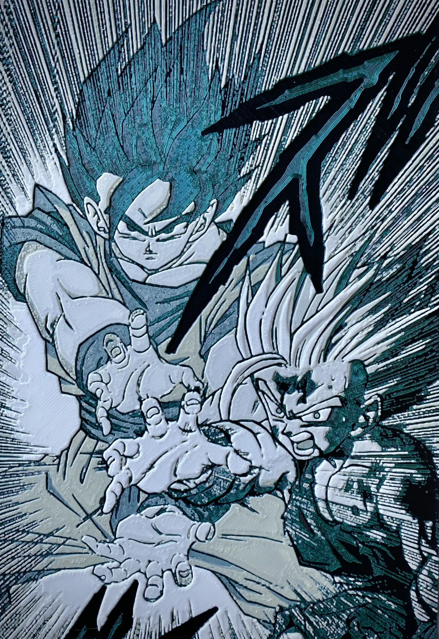 Một khoảnh khắc rất kinh điển trong DBZ là khi Goku giúp Gohan với tinh thần của mình để thực hiện Kamehameha. Hồi nhỏ tui mê cái này lắm luôn á. Tui đã biến nó thành tranh 3D với Hueforge.
