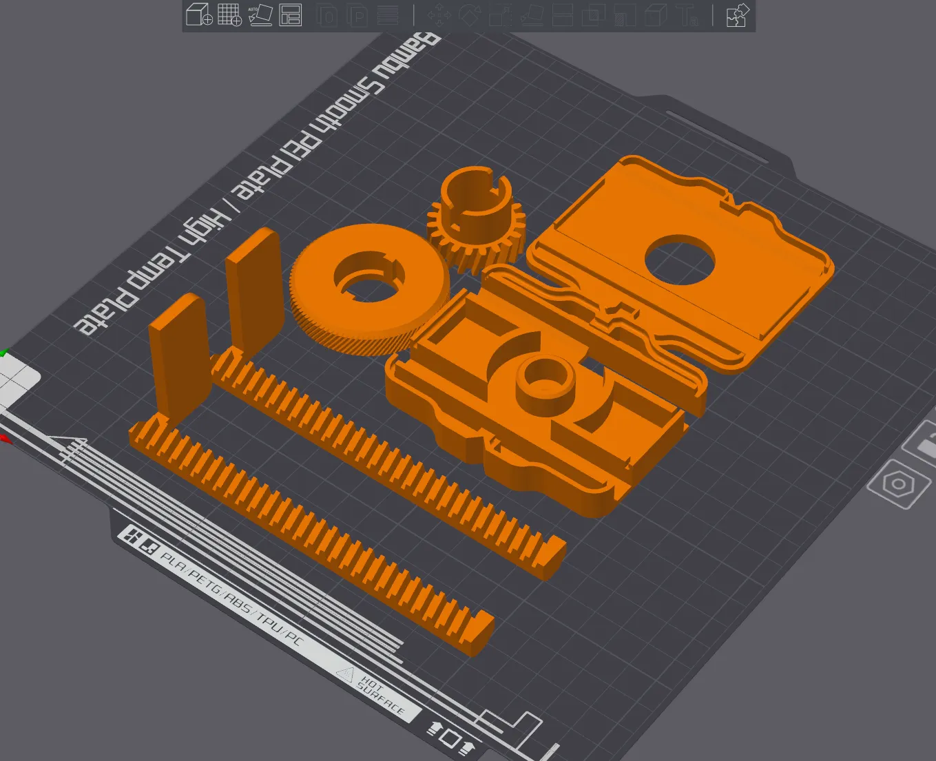 - Đặt các thanh răng vào "Case Bottom" và đưa chúng vào giữa, ép chúng lại với nhau.