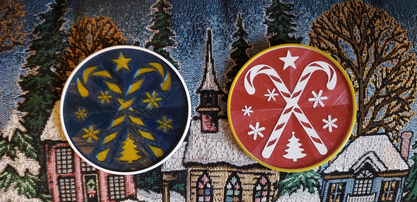 Thêm một món ngọt ngào vào bộ sưu tập ly giữ đồ uống của bạn! Mẫu ly giữ đồ uống hình kẹo gậy bắt chéo này với họa tiết mùa lễ hội, bao gồm bông tuyết, cây thông và ngôi sao. Hoàn hảo cho Giáng sinh và các dịp lễ hội khác. Có đế giữ ly đi kèm, giúp xếp chồng gọn gàng.