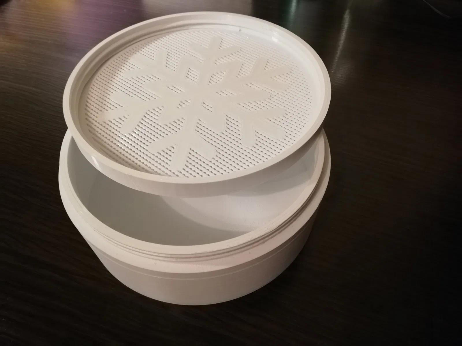 Tôi cũng đính kèm một cái nắp không có lỗ khoét, để bạn có thể thêm logo lên trên mặt nắp trong PrusaSlicer.