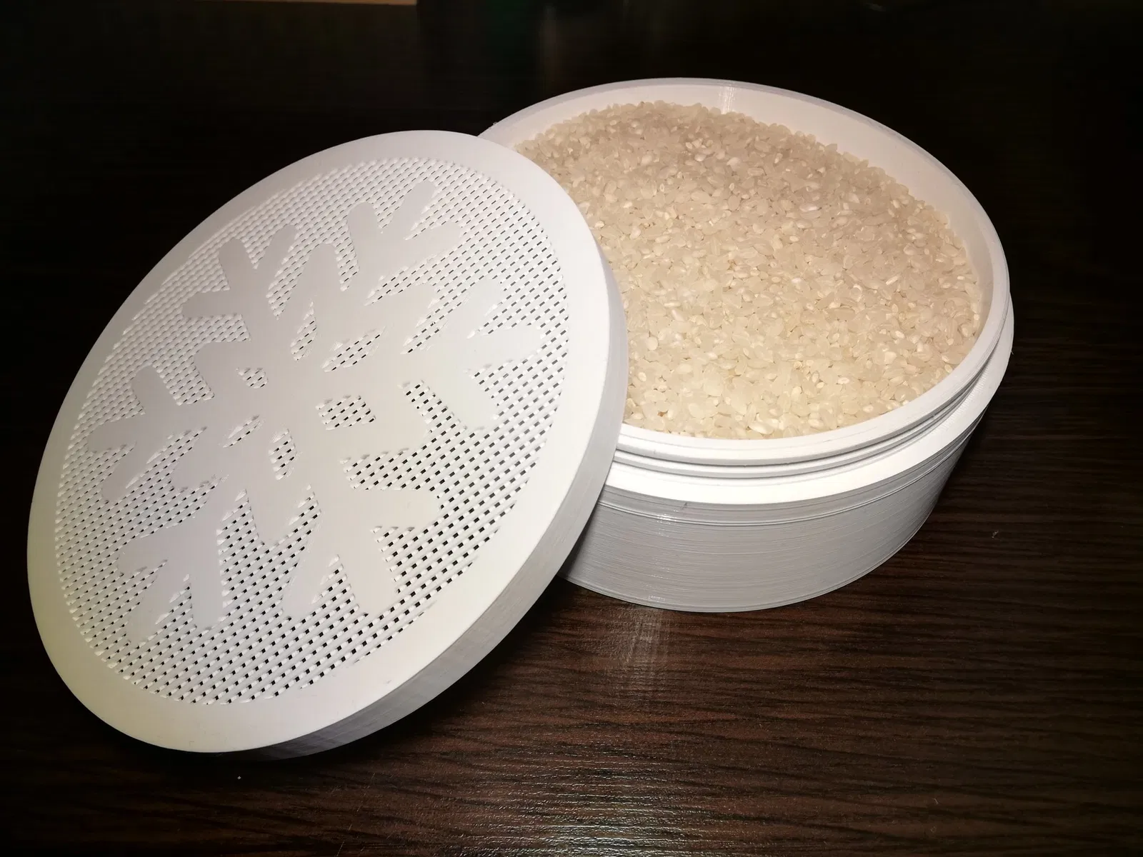 Hộp đựng có nắp vặn, thiết kế để chứa gạo hoặc gel hút ẩm, giúp xe hơi không bị mờ kính vào những đêm lạnh. Có thêm nắp không khoét lỗ để bạn tùy chỉnh logo.
