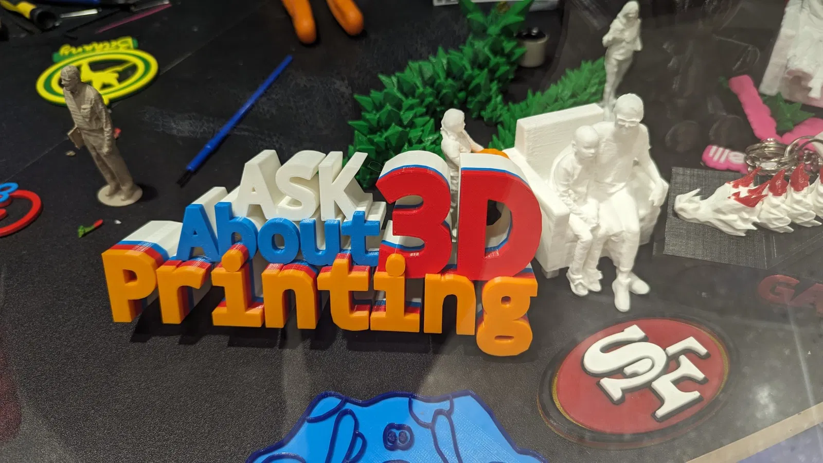Đây là một tấm biển vui để đặt ở cửa sổ hoặc trên bàn để mọi người biết mà hỏi bạn về in 3D. In ra mặt sau và dùng thay đổi màu lớp để có được văn bản với các màu khác nhau.