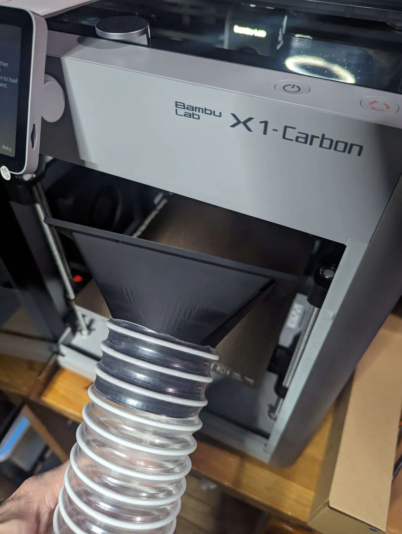 Chỉnh sửa phụ kiện ống xả của Bambu X1C để vừa với ống 63mm (2.5in). Bản in này có thành dày 4mm, sử dụng vít M3 và băng keo xốp để lắp đặt.