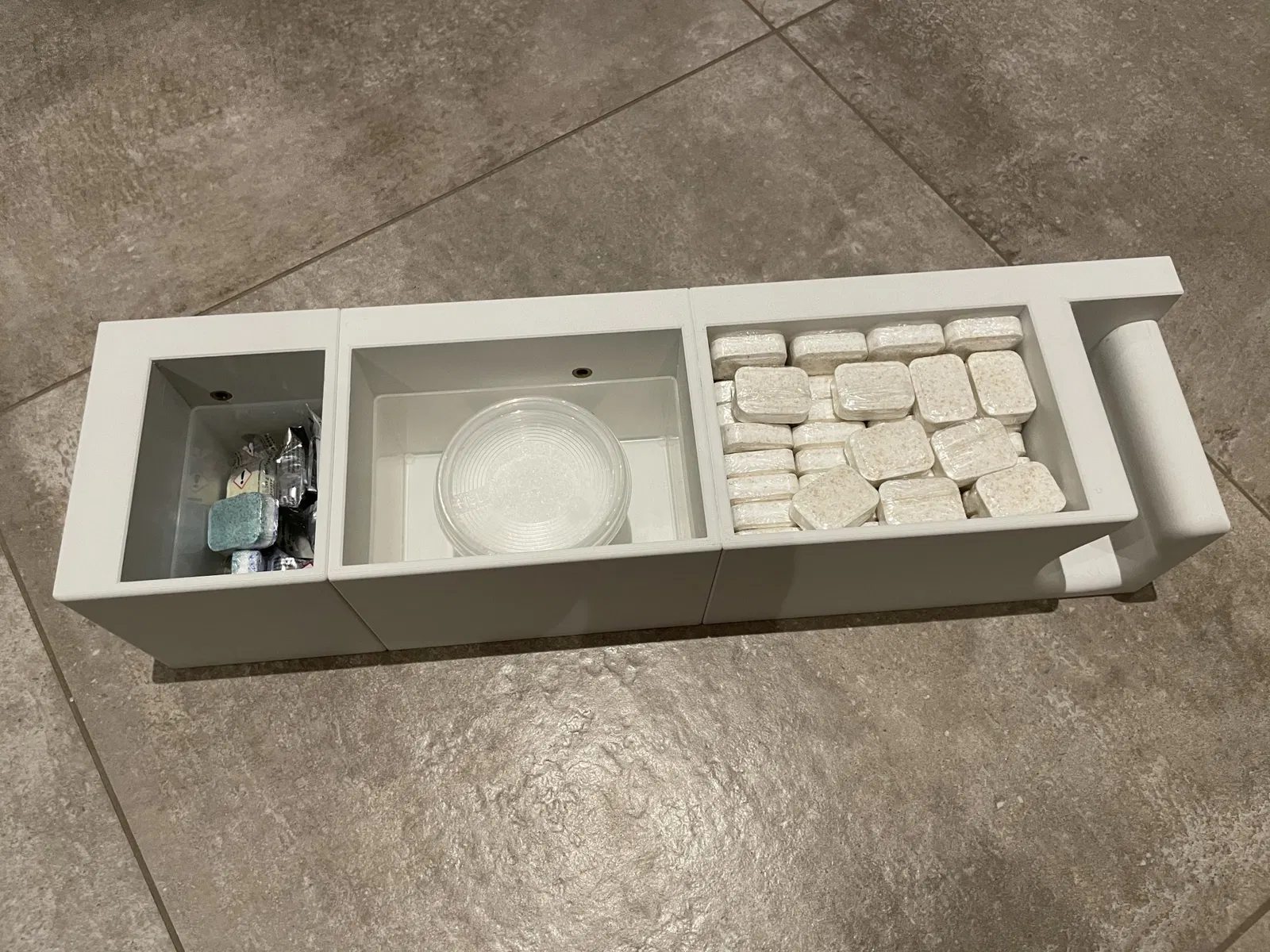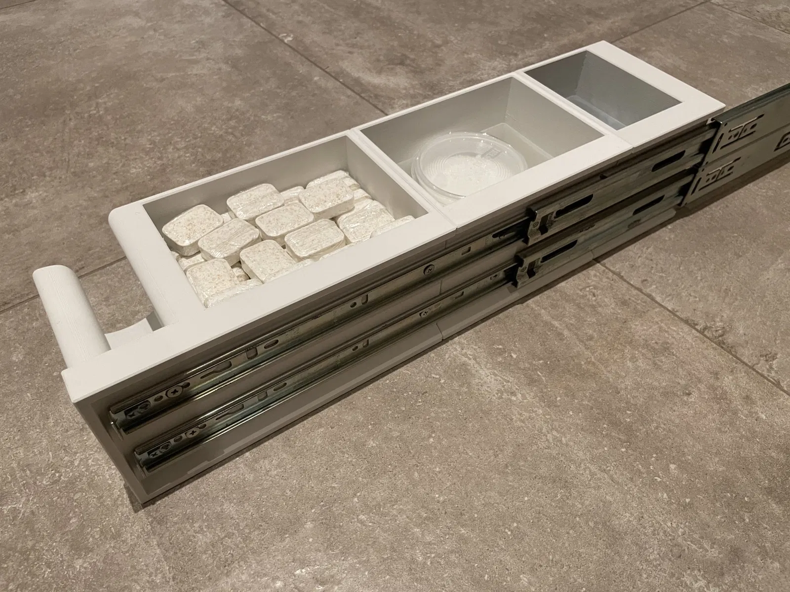 Ngăn kéo nhỏ gọn, thích hợp để đựng phụ kiện máy rửa chén, linh kiện điện tử hay các vật dụng nhỏ khác. Thiết kế đơn giản, dễ in và lắp đặt.