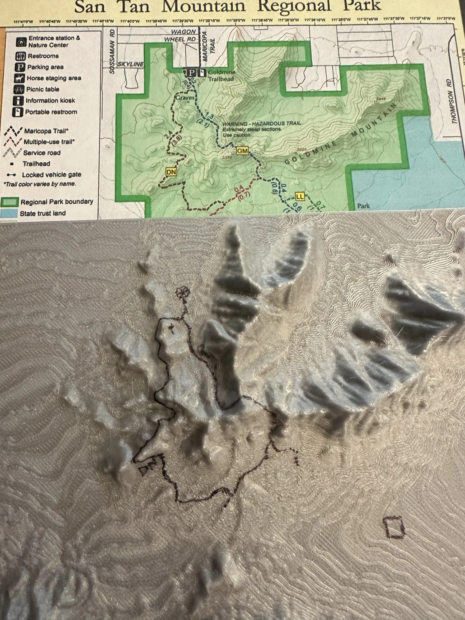 Khu bảo tồn San Tan là nơi tuyệt vời để đi bộ, đạp xe và cưỡi ngựa gần Phoenix, Arizona. Tui cũng hay đi bộ ở đó lắm nên nghĩ làm cái bản đồ 3D cho khu này chắc hay.