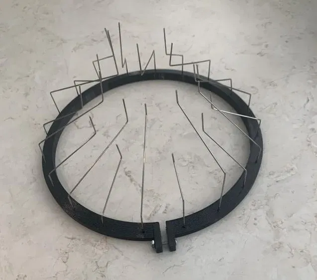 Ngăn chim đậu lên đồng hồ đo mưa WS5000 của bạn! File OpenSCAD đi kèm để chỉnh kích thước lỗ cắm gai. Vòng gai 20 gai giúp chim khó đậu hơn, có độ dốc chống đọng nước.