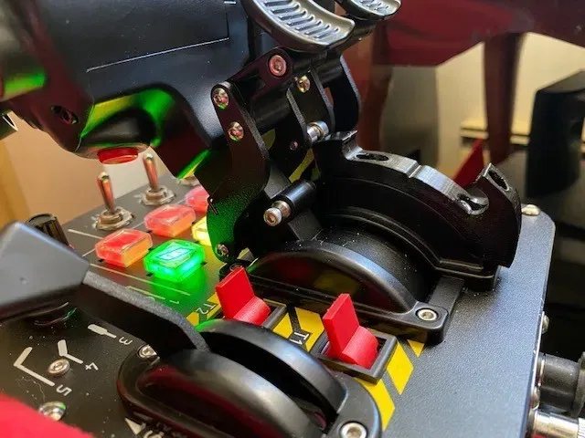 This is a detent for the Virpil VPC MongoosT-50CM3 Throttle made for Star Wars Squadrons (SWS). In Squadrons you spend a lot of time going from full throttle to zero throttle (and a few times in the middle) very rapidly and almost constantly. This throttle has a LONG rang of motion that while brilliant for precision flying, makes for a lot of rowing in SWS. This detent reduces the arc of travel to~40 degrees and includes a center notch for that maneuverability sweat spot.