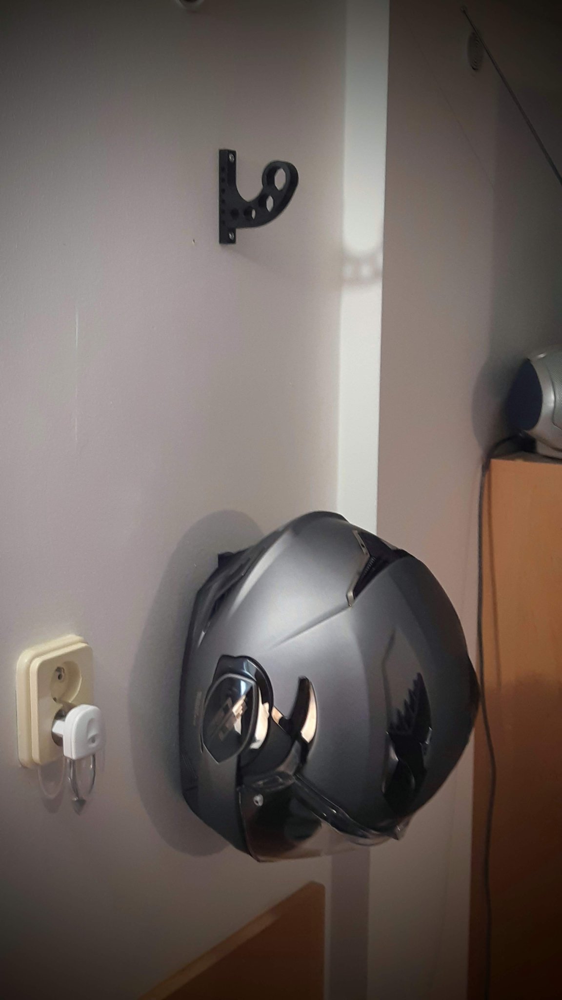 Cần chỗ để cất nón bảo hiểm xe máy nên tui đã tạo ra cái móc treo đơn giản mà cực kỳ tiện lợi này. Việc in khá là đơn giản, xài PLA là đủ bền rồi, hoặc bạn có thể dùng PETG nếu thích.