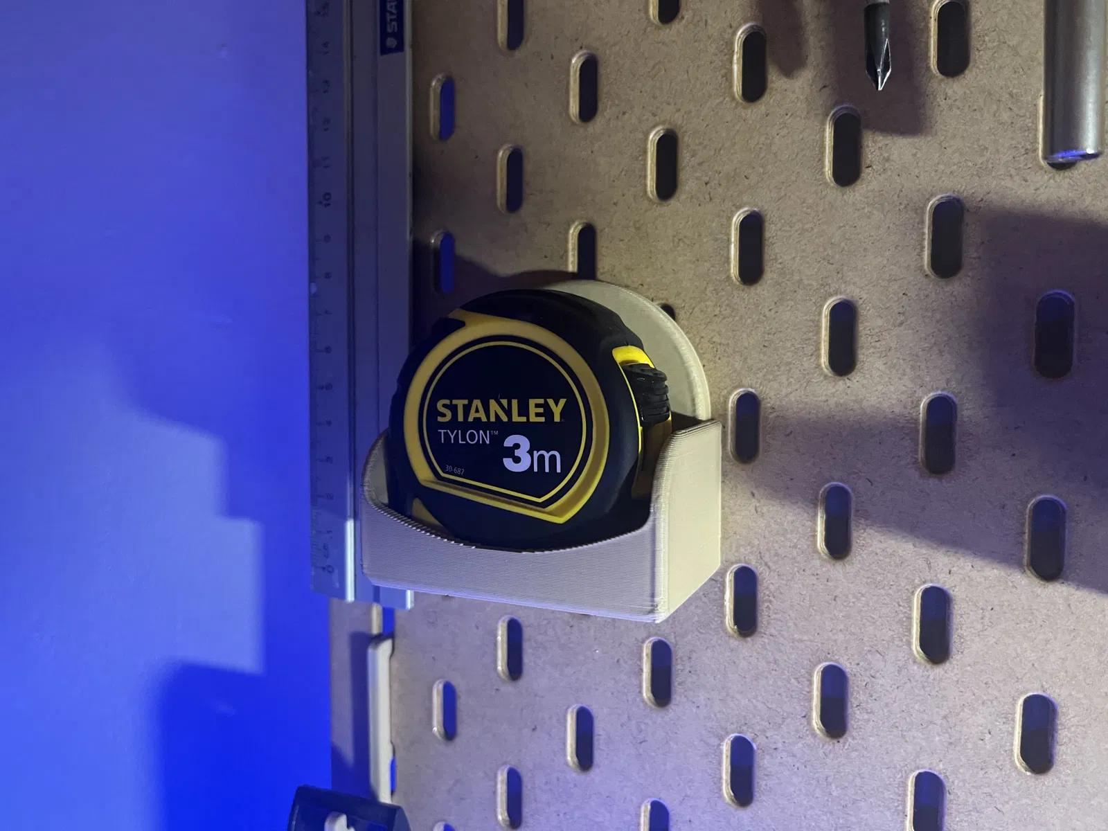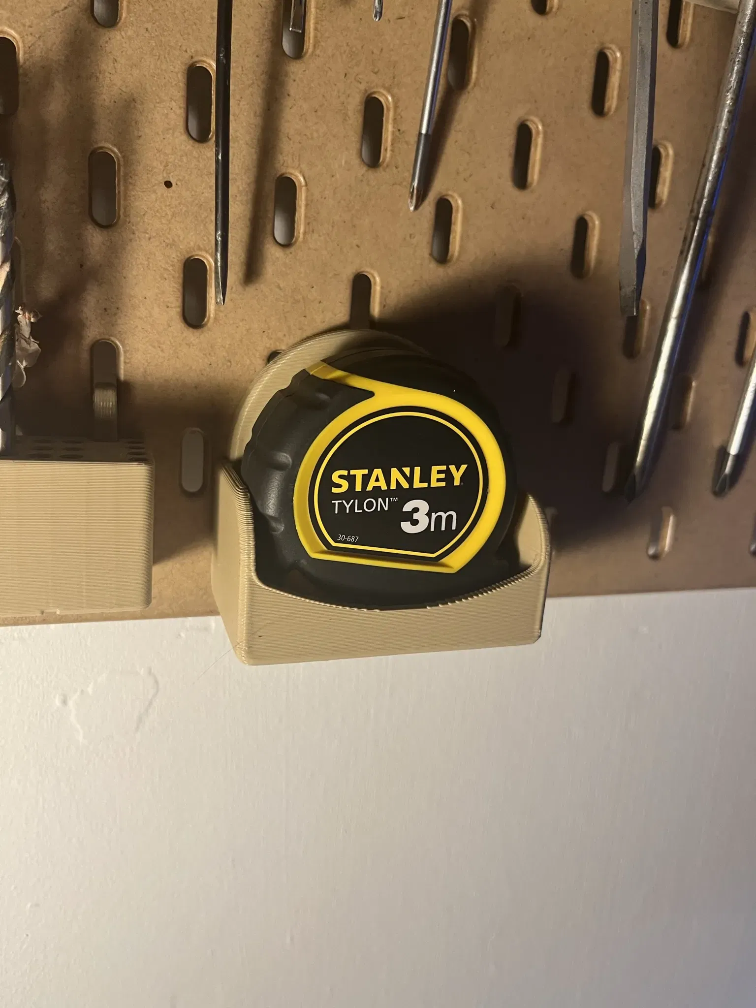 Giá đỡ thước cuộn 3m của STANLEY, thiết kế riêng cho hệ thống pegboard SKADIS của IKEA. Giải pháp lưu trữ gọn gàng, tiện lợi cho dụng cụ đo của bạn, giúp không gian làm việc thêm ngăn nắp.