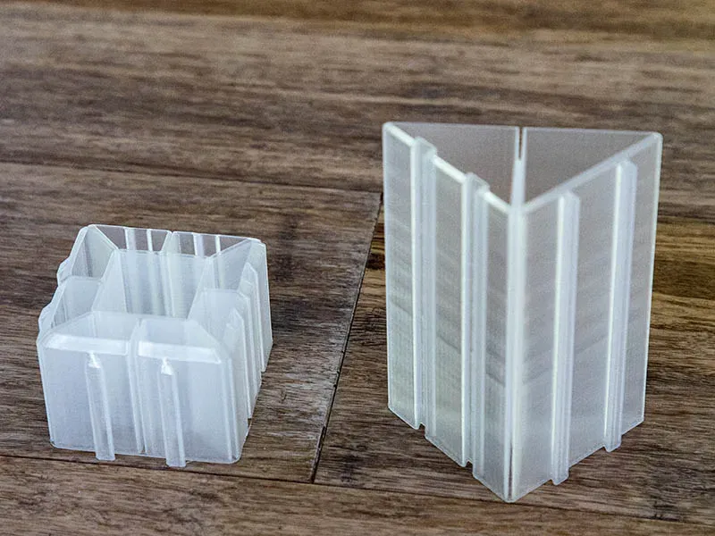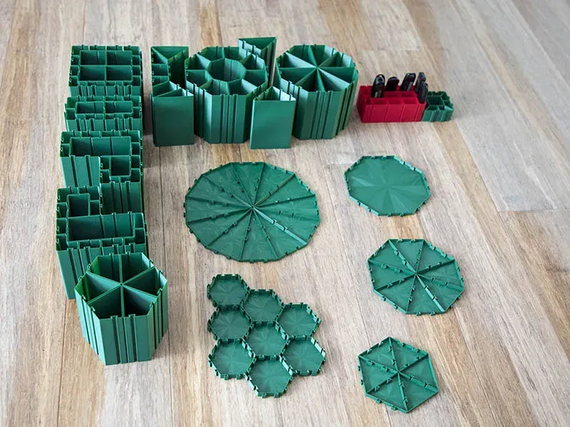 Ban đầu tôi đã thực hiện bản sửa đổi này để cho phép dung sai thay đổi trong các khớp nối đuôi én. Dung sai 0.2mm là thứ hoạt động tốt nhất với tôi. Sau đó, tôi quyết định thử thêm nhiều khe riêng lẻ vào mỗi bộ phận & vẫn giữ được chế độ in bình. Tôi giữ nguyên kích thước 20mm giữa các khớp nối đuôi én, nhưng điều này cũng có thể thay đổi được. Tôi cũng đã thay đổi kích thước bên ngoài từ 24, 48 & 96mm thành 27, 54 & 108mm. Điều này cho tôi thêm một chút không gian để tạo các khe bên trong. Ngoài các hình dạng được sử dụng trong thiết kế mà tôi đã sửa đổi, tôi đã thêm hình lục giác, hình bát giác, hình mười hai cạnh & một vài hình dạng chuyển tiếp. Tôi đã in tất cả các mẫu của mình ở chế độ bình với chiều cao lớp là 0.28mm với đầu phun 0.4mm & 3 lớp đáy. Tôi đã sử dụng hình xoắn ốc Octagram cho lớp trên cùng của hình lục giác ngắn hơn & các hình dạng khác.