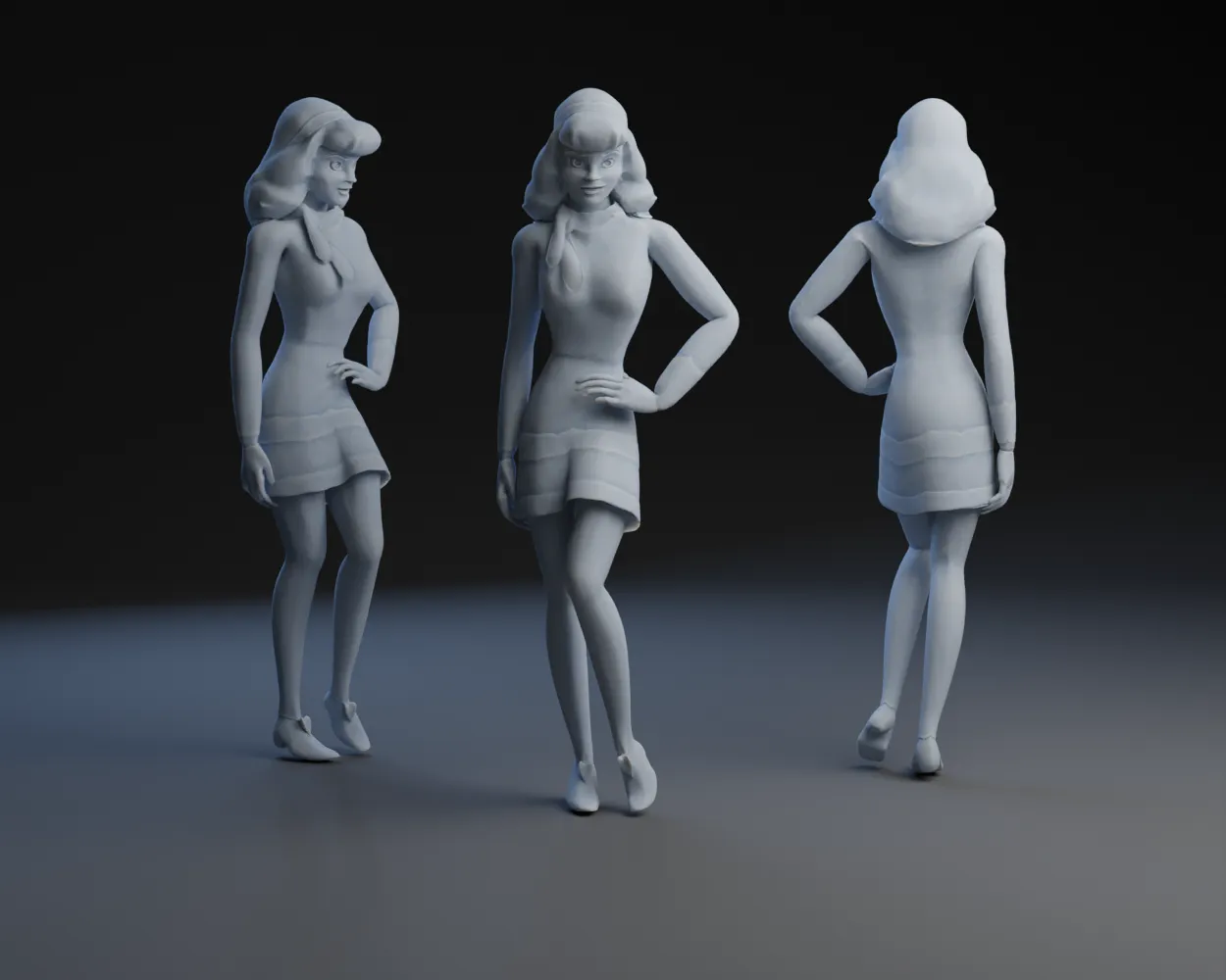 Chi tiết mô hình 3D Daphne Blake, nhân vật nữ tóc đỏ quyến rũ trong loạt phim hoạt hình Scooby Doo kinh điển. Hoàn hảo cho fan và người yêu thích sưu tầm.