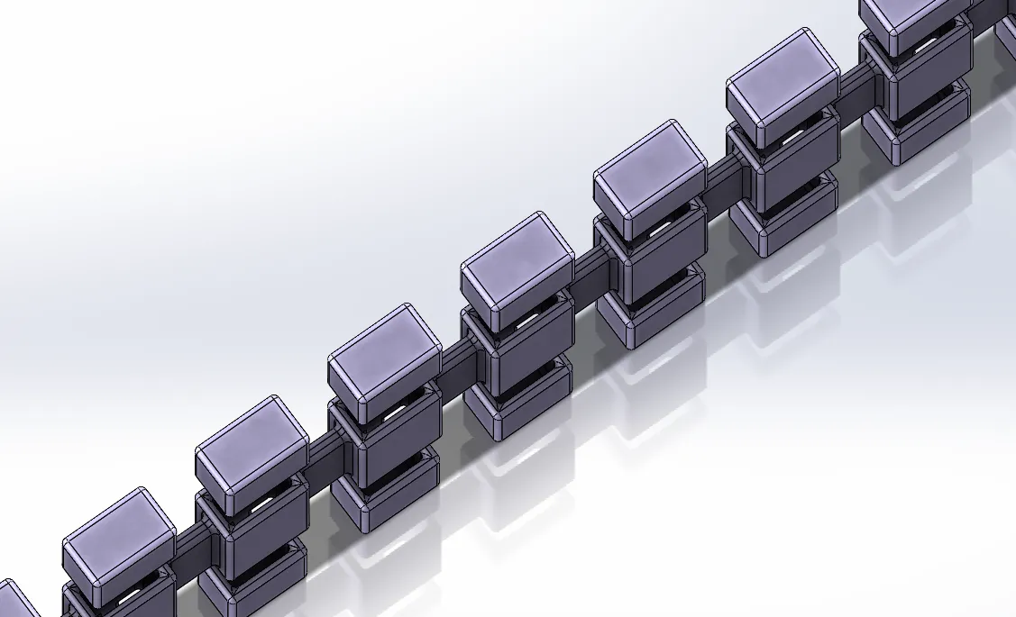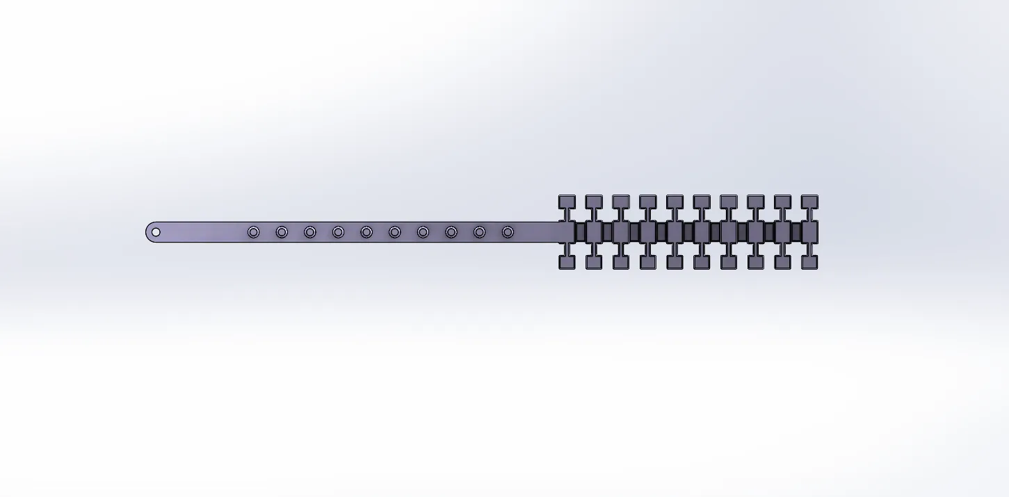Dây đeo pin kiểu băng đạn cho pin 1s (BetaFPV 300mAh 1s), có kèm theo khóa cài dây đeo. Dùng TPU để in, cần chân chống và infill 100%. Có thể cần thử nghiệm hướng in cho phù hợp.