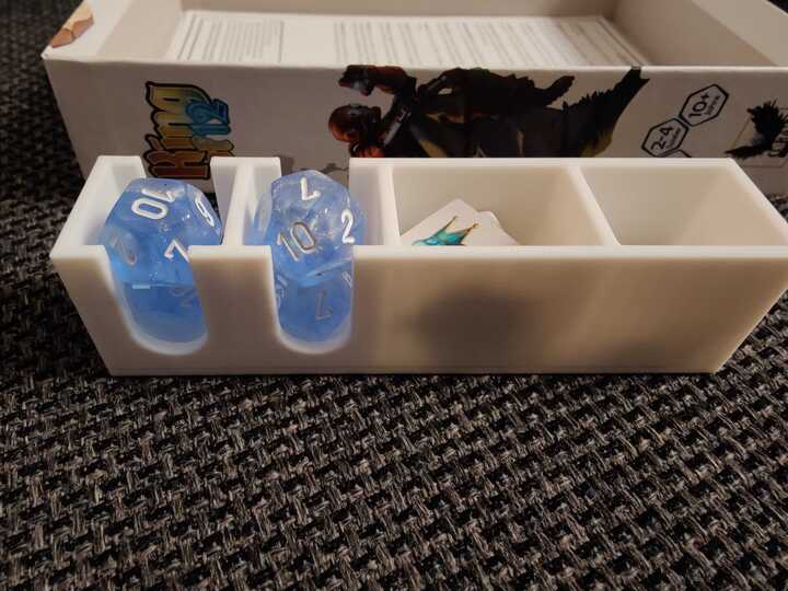 Nó có không gian để chứa các marker và xúc xắc. Nó cũng có thể dùng để tách các lá bài ra, giúp chúng không bị lẫn lộn.