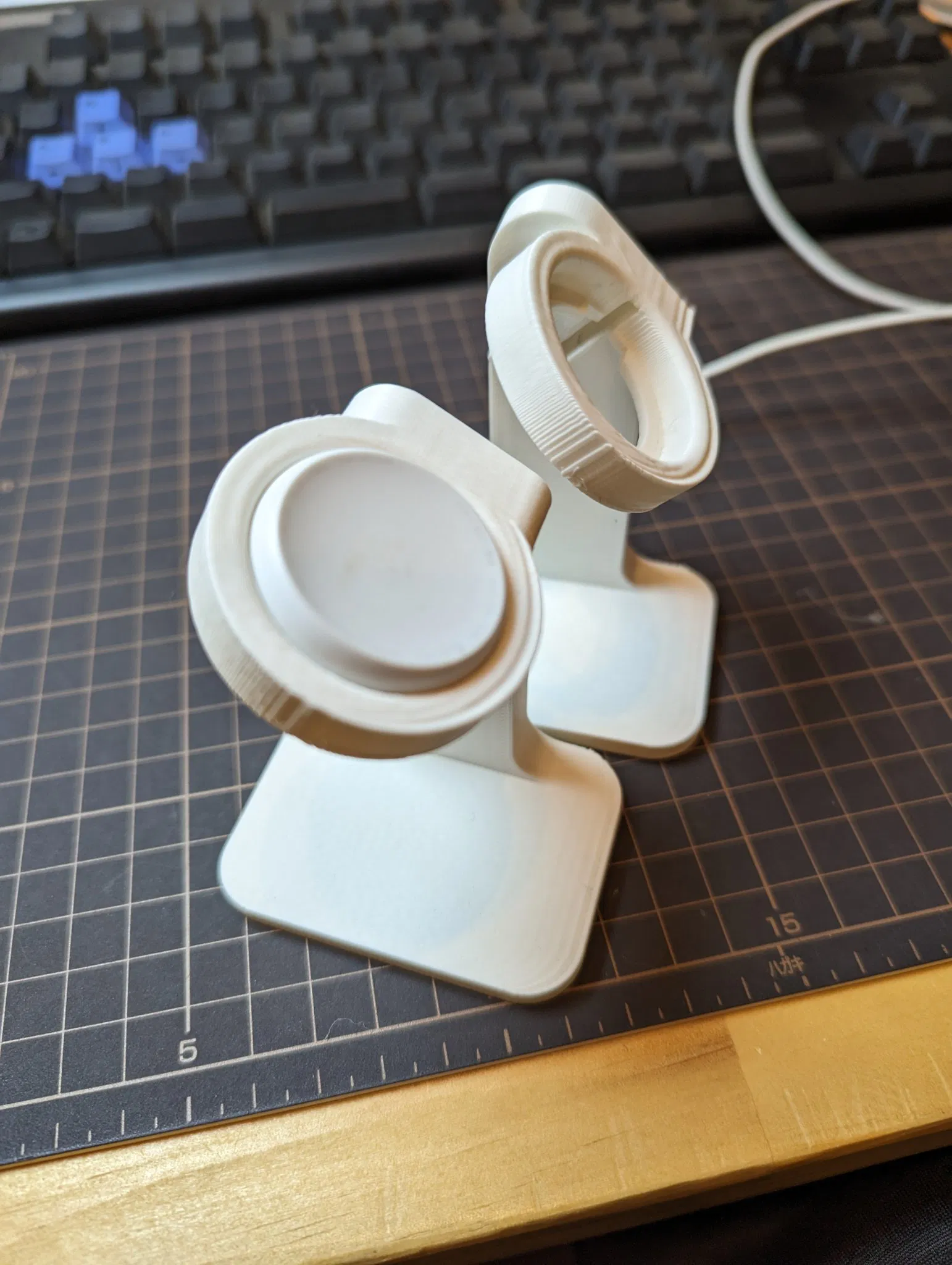 A stand with the charger side tilted 30 degrees. The original is 45 degrees.