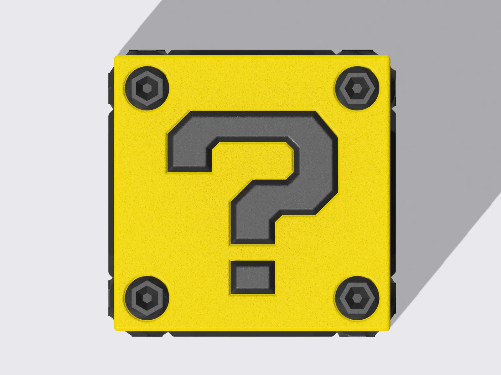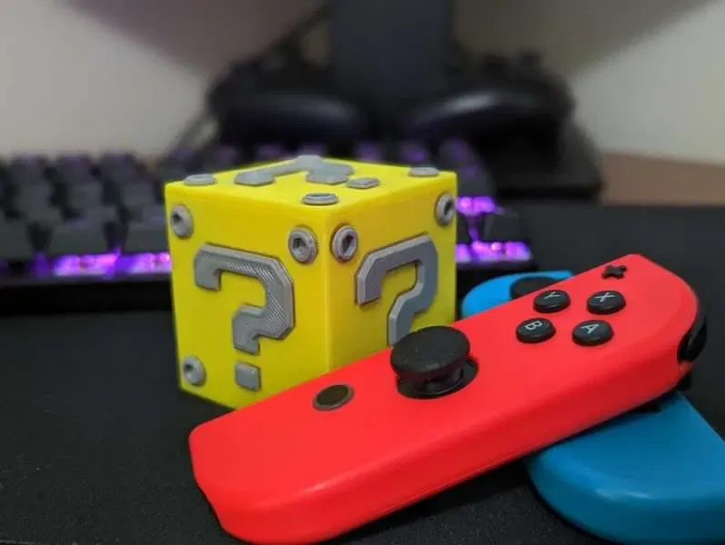 V2 Khối Bí Ẩn hoặc Hộp Câu Hỏi. Dựa trên khối q của Mario nhưng là phiên bản của riêng tôi về sự kiện. Được in thành nhiều phần và lắp ráp bằng một ít keo.