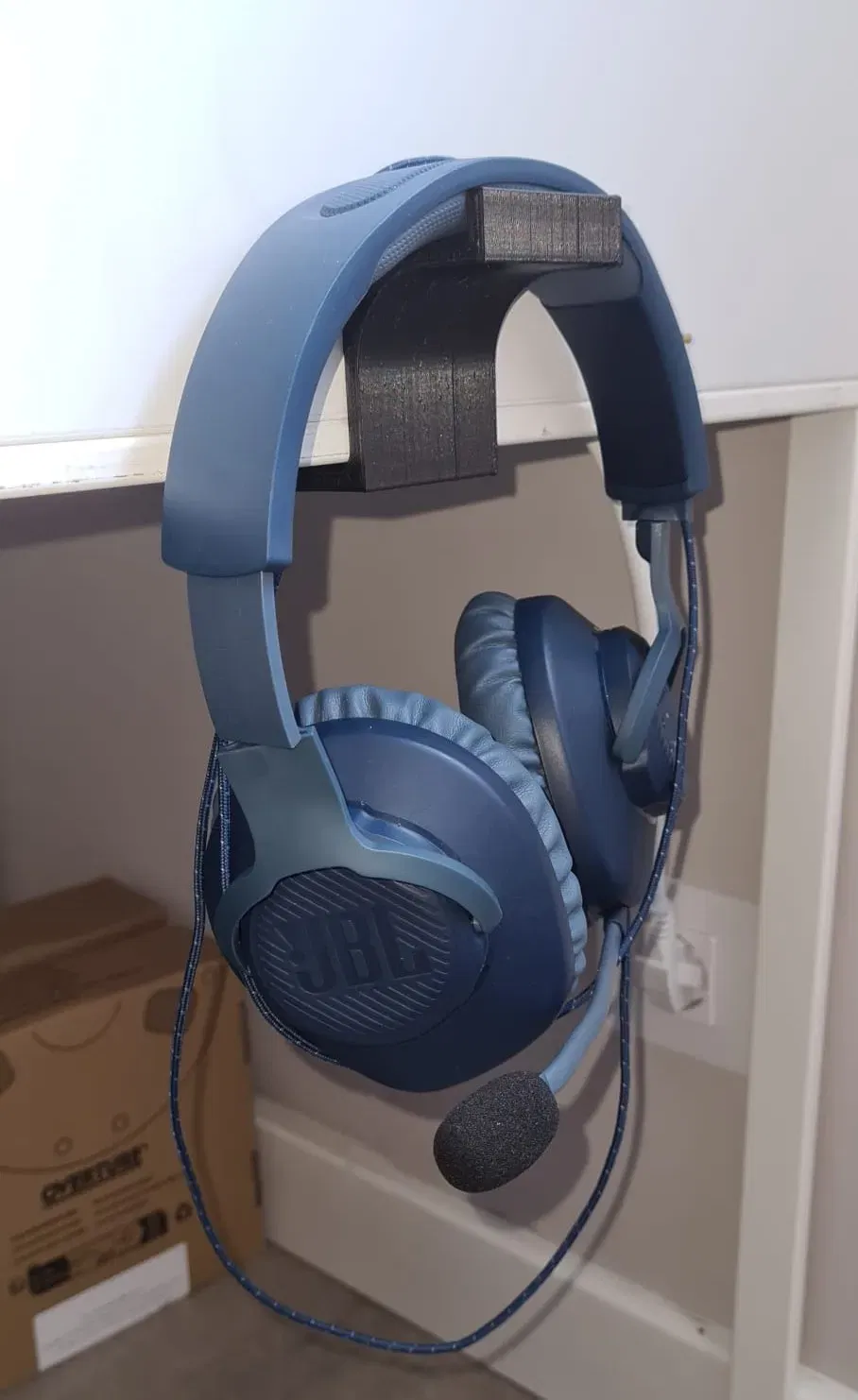 Móc treo tai nghe tối giản, thiết kế cho bàn làm việc và tường dày tới 41mm. In nghiêng để tăng độ bền. Giải pháp gọn gàng, thẩm mỹ cho không gian của bạn. Phù hợp với tai nghe JBL Quantum 100.