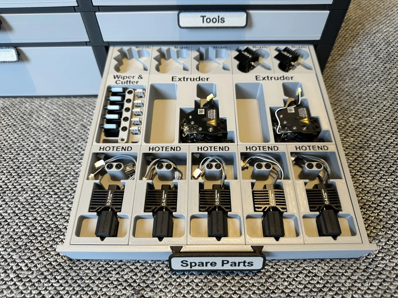 These inserts now only fit the new versions of de module's drawers. The new drawers are 31mm instead of the orignal 28mm. New drawers still fit the original modules.