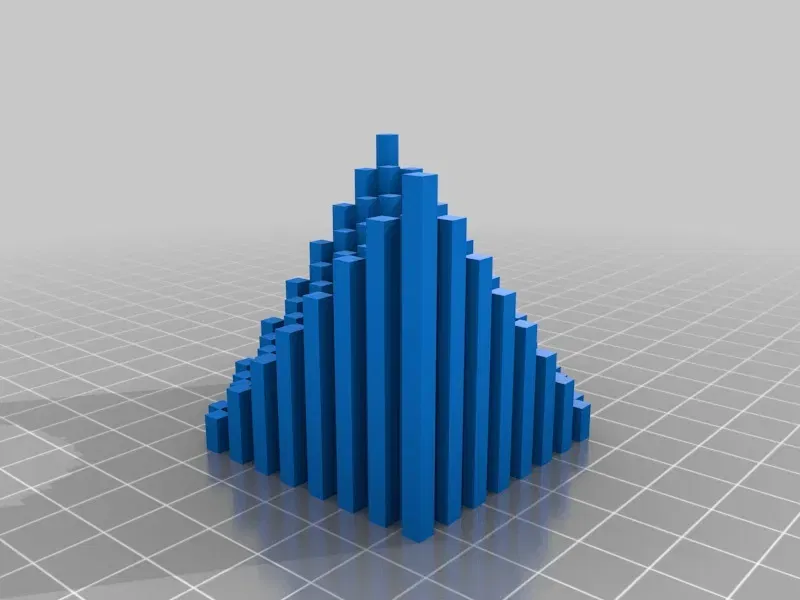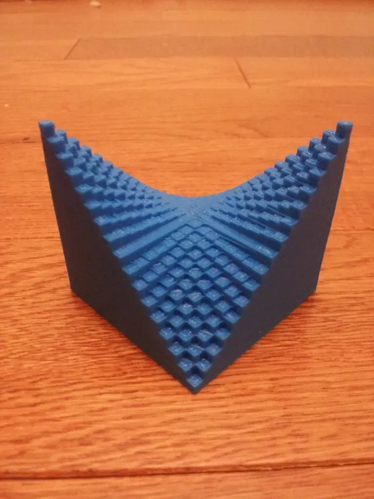 This is based on the plot Z=X*Y (known as a hyperbolic paraboloid or a saddle point) but instead of being a continuous surface, I've discretized it so that it is formed from a collection of varying height square prisms.