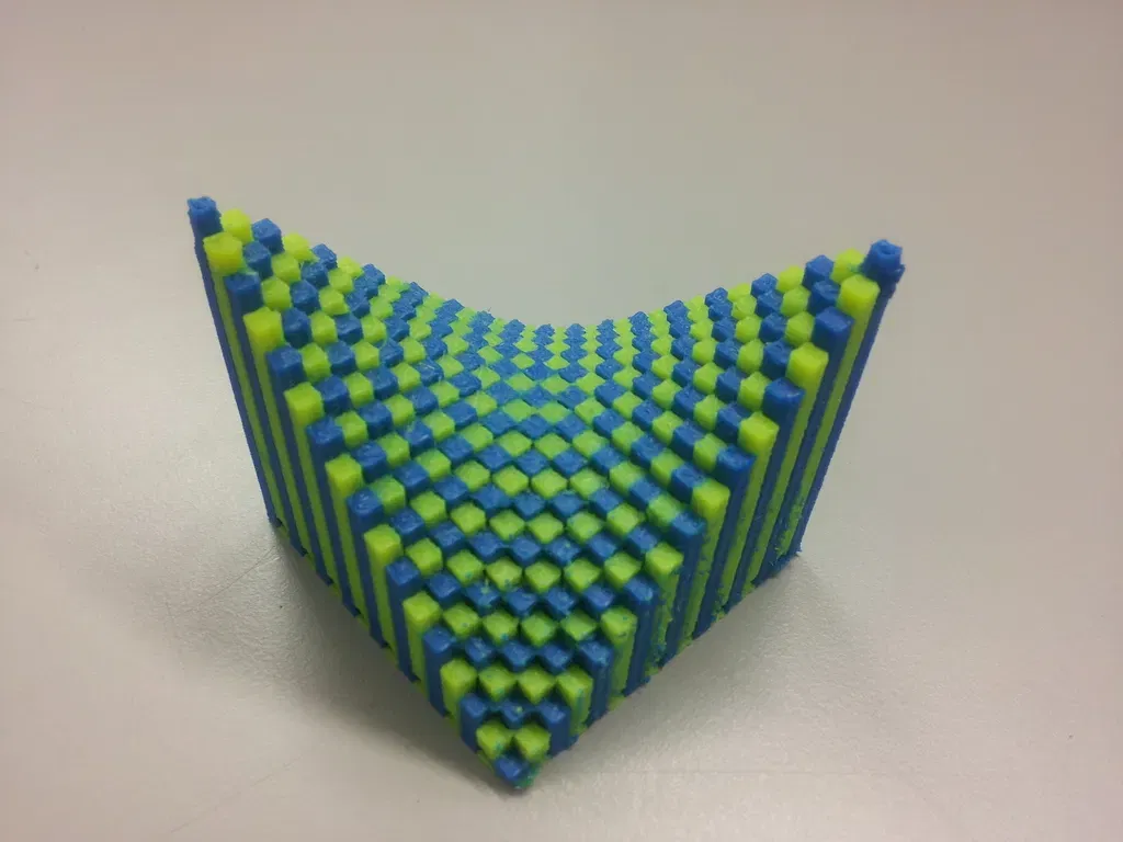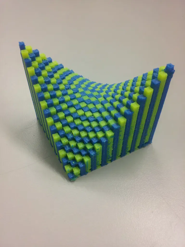 hyperbolicParaboloid.stl is for a machine with a single extruder. it is formed from 16x16 square prisms, where each square is 3mm per side.